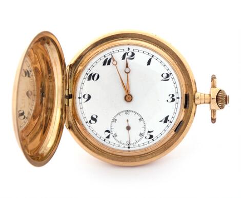 IWC: Dobbeltkapslet lommeur af 14k guld. Mekanisk værk med ankergang og kroneoptræk. 1910'erne.
