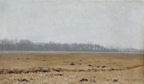 2547/215LyngbyAlbert Wang: Efterårslandskab med en gul mark. Usigneret. Betegnet. Olie på lærred. 28 x 47 cm.