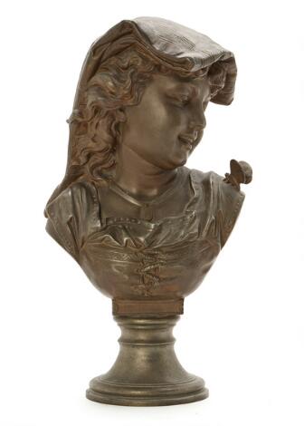2547/208LyngbyCarl Dorn (1831-1919), efter: Buste af zink i form af pige med sommerfugl. 19. årh. H. 45 cm.