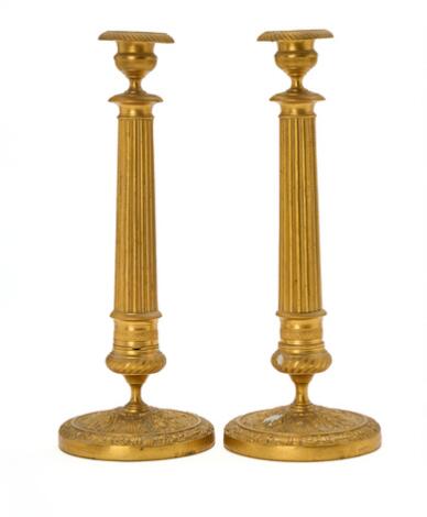 2547/217LyngbyEt par franske stager af forgyldt bronze, empireform 19. årh. H. 32 cm. (2)