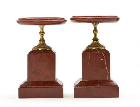 2547/187LyngbyEt par tazzi af rødbroget marmor og montering af forgyldt bronze. Frankrig 19. årh. H. 20 cm. (2)