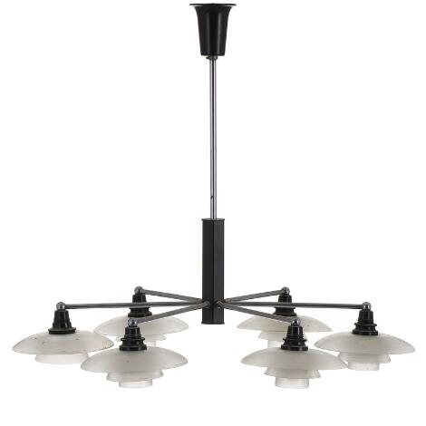 2547/660LyngbyPoul Henningsen: "PH-Stammekrone". Seksarmet lysekrone med 2/1 skærme af matglas. 1930erne.