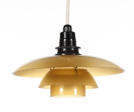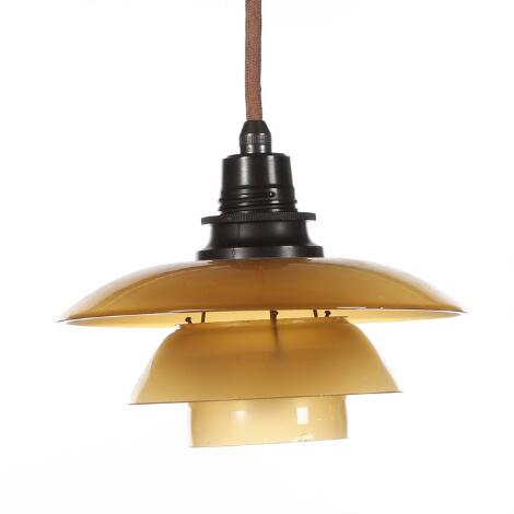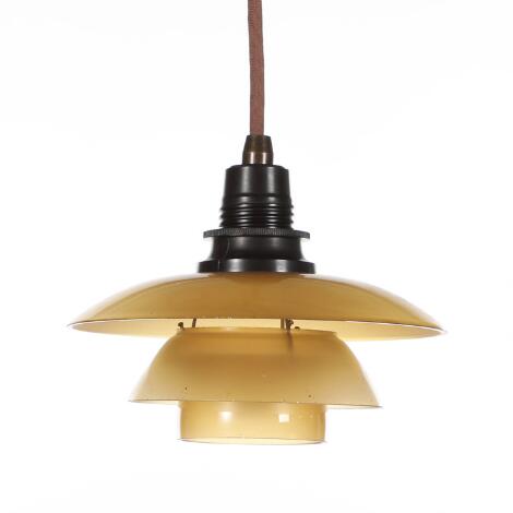 2547/644AarhusPoul Henningsen: "PH-1/1". Pendel med skærme og bundskål af ravfarvet glas. Louis Poulsen. Diam. 16.