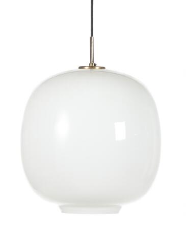 2547/702AarhusFog & Mørup: Et par pendler af opalglas med skærmholder af hvidlakeret messing. H. 43. (2)
