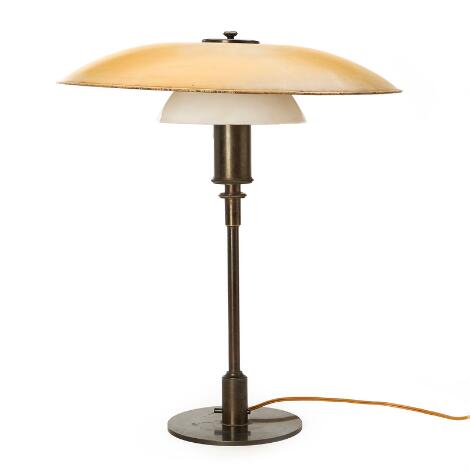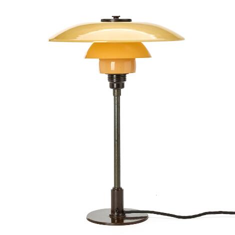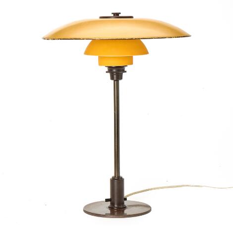 2547/689LyngbyPoul Henningsen: "PH-3,5/2,5". Bordlampe med skærme af gulmalet matglas. Udført hos Louis Poulsen, 1930'erne.