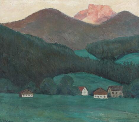 2547/578AarhusEwald Manz: Mountain landscape with houses. Signed E. Manz. Oil on canvas. 51 x 59 cm.