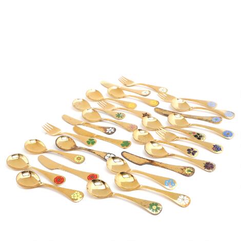 2547/611AarhusGeorg Jensen: A selection of spoons of goldplated sterling silver with enamel. (43)