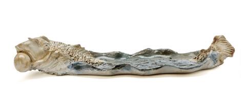 2547/579LyngbyJørgen Haugen Sørensen: Untitled. Signed monogram JHS. Dish of glazed stoneware. H. 12 cm. L. 76 cm. W. 23 cm.