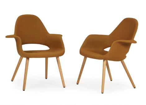 2547/560AarhusCharles Eames, Eero Saarinen: "Organic chair". A pair of chairs with oak legs and curry yellow hopsak. Manufactured by Vitra. (2)