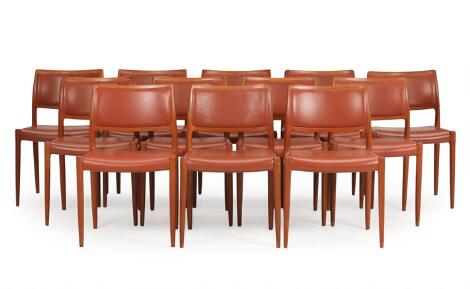 2547/608AarhusNiels O. Møller: A set of 12 teak chairs, seat and back upholstered with brown leather. (12)