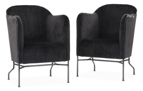 2547/561LyngbyMats Theselius: "Star". A pair of black lacquered steel easy chairs. Upholstered with black plush. (2)