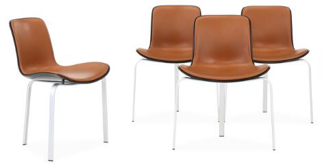 2547/603LyngbyPoul Kjærholm: "PK 8". Set of four chairs with aluminium base. Black plastic seat and back. Upholstered with brown, coloured leather. (4)