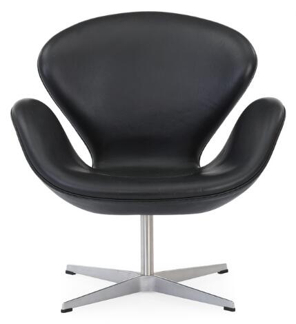 2547/609LyngbyArne Jacobsen: The Swan Chair". Easy chair with swivel aluminium and steel frame. Upholstered with black leather.
