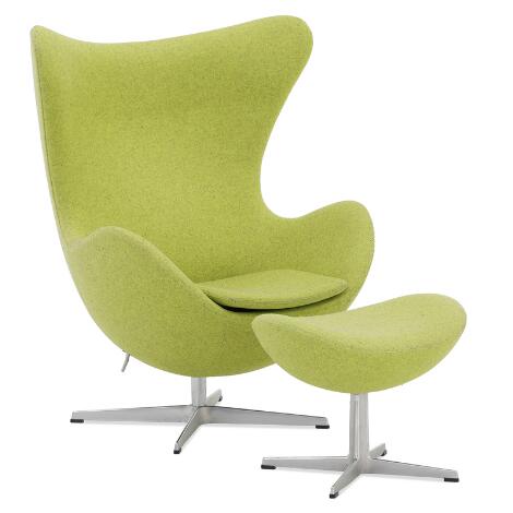 2547/612LyngbyArne Jacobsen: "The Egg Chair". Easy chair and ottoman with aluminium base. Upholstered with green wool. (2)