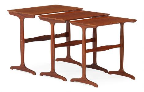 2547/585LyngbyOle Wanscher: Set of three mahogany nesting tables. H. 55/54/53 cm. L. 60/54/49 cm. W. 40/38/35 cm. (3)