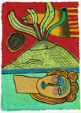 2547/672LyngbyCorneille: "Le joyeux volcan". Signeret Corneille, EA 16/24. Serigrafi i farver. Bladstørrelse 70 x 50 cm.