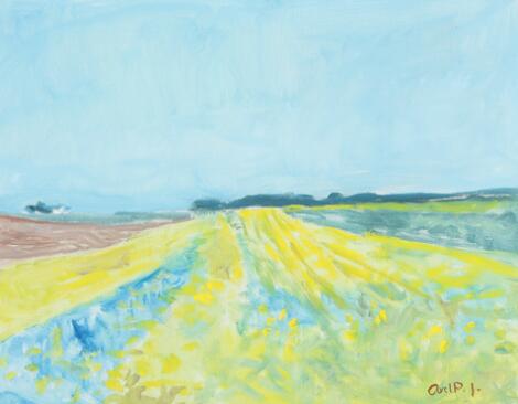 2547/642AarhusAxel P. Jensen: Landskab med åbne marker. Signeret Axel P.J. Olie på lærred. 53 x 67 cm.