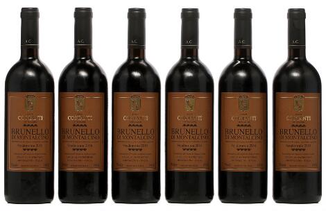 6 bts. Brunello di Montalcino, Conti Costanti 2016 A-A/B (bn). Oc.