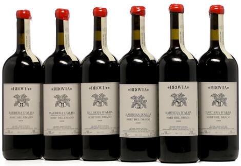6 bts. Mg. Barbera d'Alba "Sori' del Drago", Brovia 2008 A (hf/in). Oc.
