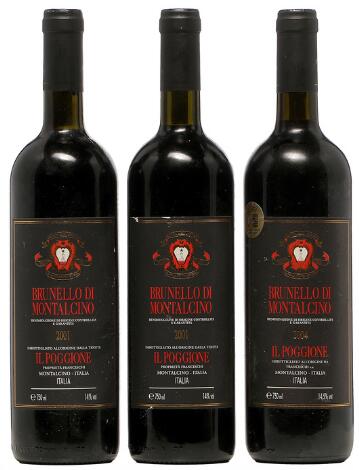 2 bts. Brunello di Montalcino, Tenuta Il Poggione 2001 A-A/B (bn). etc. Total 3 bts.