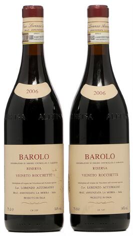 2 bts. Barolo "Rocche" Riserva, Lorenzo Accomasso 2006 A (hf/in).