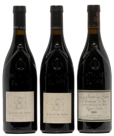 1 bt. Chateauneuf-du-Pape, "Le Secret des Sabon", Roger Sabon 2007 A (hf/in). etc. Total 3 bts.