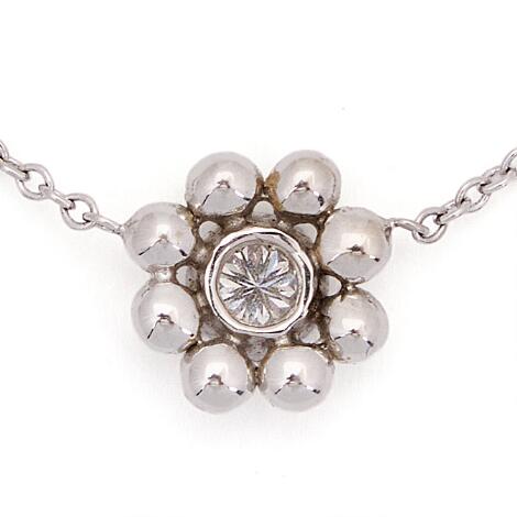 Tiffany & Co.: "Daisy Jolie Bead" halskæde af 18 kt. hvidguld prydet med diamantvedhæng. L. 40,5 cm.
