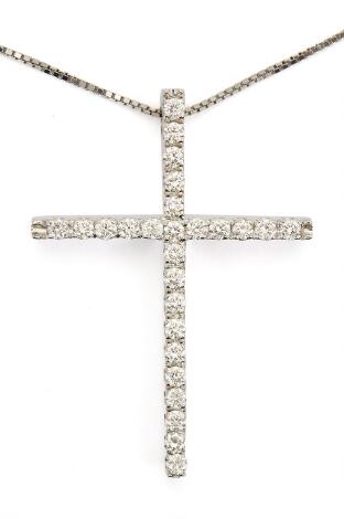Diamantvedhæng af 18 kt. hvidguld i form af kors prydet med diamanter. Halskæde af 18 kt. hvidguld medfølger. (2)