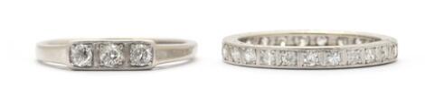 To diamantringe af 14 kt. hvidguld henholdsvis prydet med talrige diamanter. Str. 51. (2)