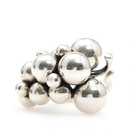 Georg Jensen: "Moonlight Grapes" ring af sterlingsølv. Vægt ca. 21 g. Front 2,6 x 3,1 cm. Str. 56.