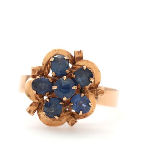 Safirring af 18 kt. guld prydet med safirer. Str. 55.