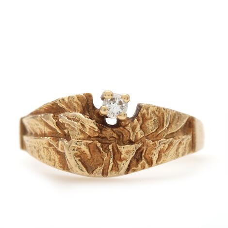 Rensch Nielsen Aps: Diamantring af 14 kt. guld prydet med diamant. Str. 55