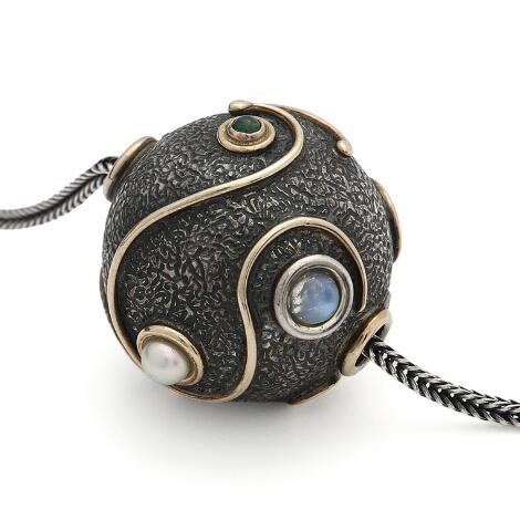 Tina Siersbøl: Vedhæng af oxideret sølv og delvist forgyldt sterlingsølv. Halskæde af oxideret sterlingsølv medfølger. (2)