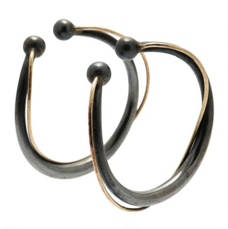 Kirsten Pontoppidan: Et par ørelokker af oxideret sølv og 14 kt. guld. Samlet vægt ca. 13 g. L. 3,4 cm. (2)