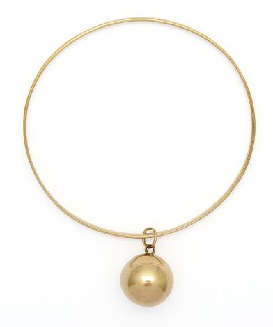 Chr. Veilskov: Armring af 14 kt. guld med charm i form af kugle af 12 kt. guld. Samlet vægt ca. 8,8 g. Diam. ca. 6 cm.