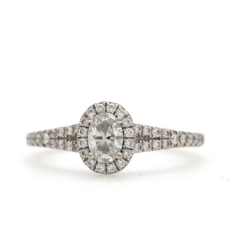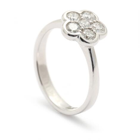 Diamantring af 18 kt. hvidguld prydet med brillantslebne diamanter på i alt ca. 0.73 ct. Vægt ca. 4 g. Str. 55.