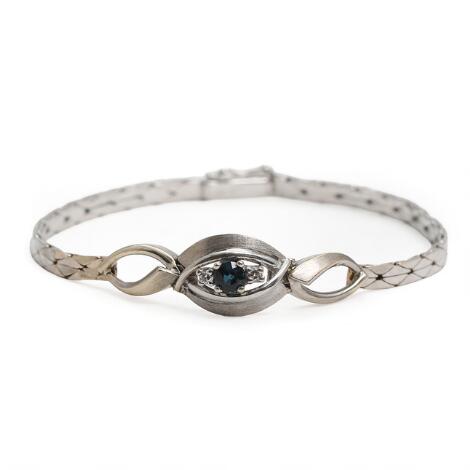 Safir- og diamantarmbånd af 14 kt. hvidguld prydet med safir og diamanter. L. 16 cm.