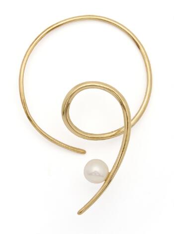 Maria Black: Perleøresmykke af 14 kt. guld prydet med ferskvandskulturperle. Vægt ca. 2,5 g. Ca. 3 x 4,5 cm.