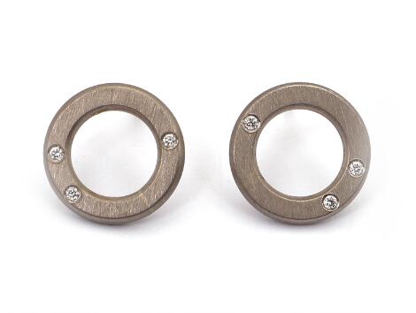 Marianne Dulong: Et par "Anello" diamantørestikker af 18 kt. hvidguld hver prydet med tre diamanter. (2)