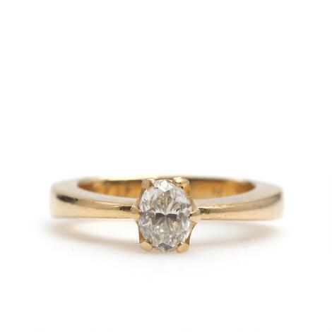F. Hingelberg: Diamantring af 18 kt. guld prydet med en oval brillantslebet diamant på ca. 0,65 ct. Str. ca. 51. 2010.