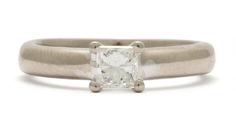 Diamant solitairering af 18 kt. hvidguld prydet med princess-cut diamant på ca. 0.35 ct. G/VVS. Str. 53.5.