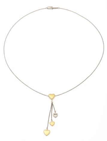 Tiffany & Co.: "Hearts Drop" halskæde af 18 kt. guld og hvidguld prydet med vedhæng i form af hjerter. L. 40,5 cm.