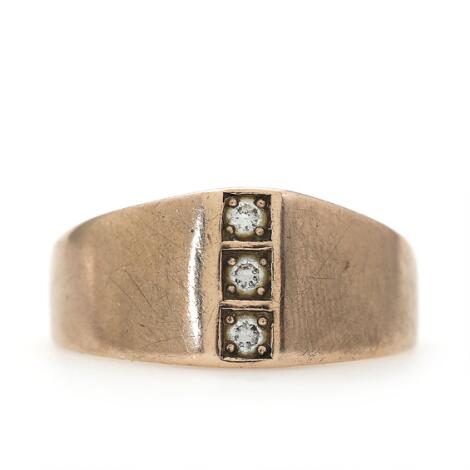 Diamantring af 14 kt. guld prydet med tre brillantslebne diamanter. Str. 55,5.