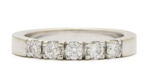 Diamant alliancering af 14 kt. hvidguld prydet med fem brillanstlebne diamanter. B. 3 mm. Str. 55,5.