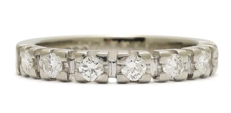 Reeslev: Diamant alliancering af 18 kt. hvidguld prydet med syv brillantslebne diamanter. B. 3 mm. Str. 49.