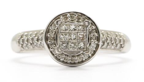 Diamantring af 14 kt. hvidguld prydet med talrige brillantslebne diamanter på i alt ca. 0.27 ct. Str. 52.