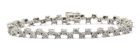 Diamantarmbånd af 10 kt. hvidguld prydet med talrige enkeltslebne diamanter. Vægt ca. 11,5 g. L. 18,2 cm.