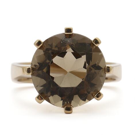 Per Borup: Røgkvartsring af 14 kt. guld prydet med facetslebet røgkvarts. Vægt ca. 6,5 g. B. ca. 13,8 mm. Str. 49,5.