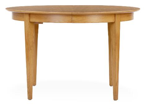 Dansk møbeldesign: Cirkulært spisebord af eg med udtræk og tre tillægsplader. (4)