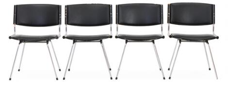 Nanna Ditzel, Jørgen Ditzel: “Badminton Chair”. Fire stole med stel af stål. Sæde betrukket med sort skai. (4)